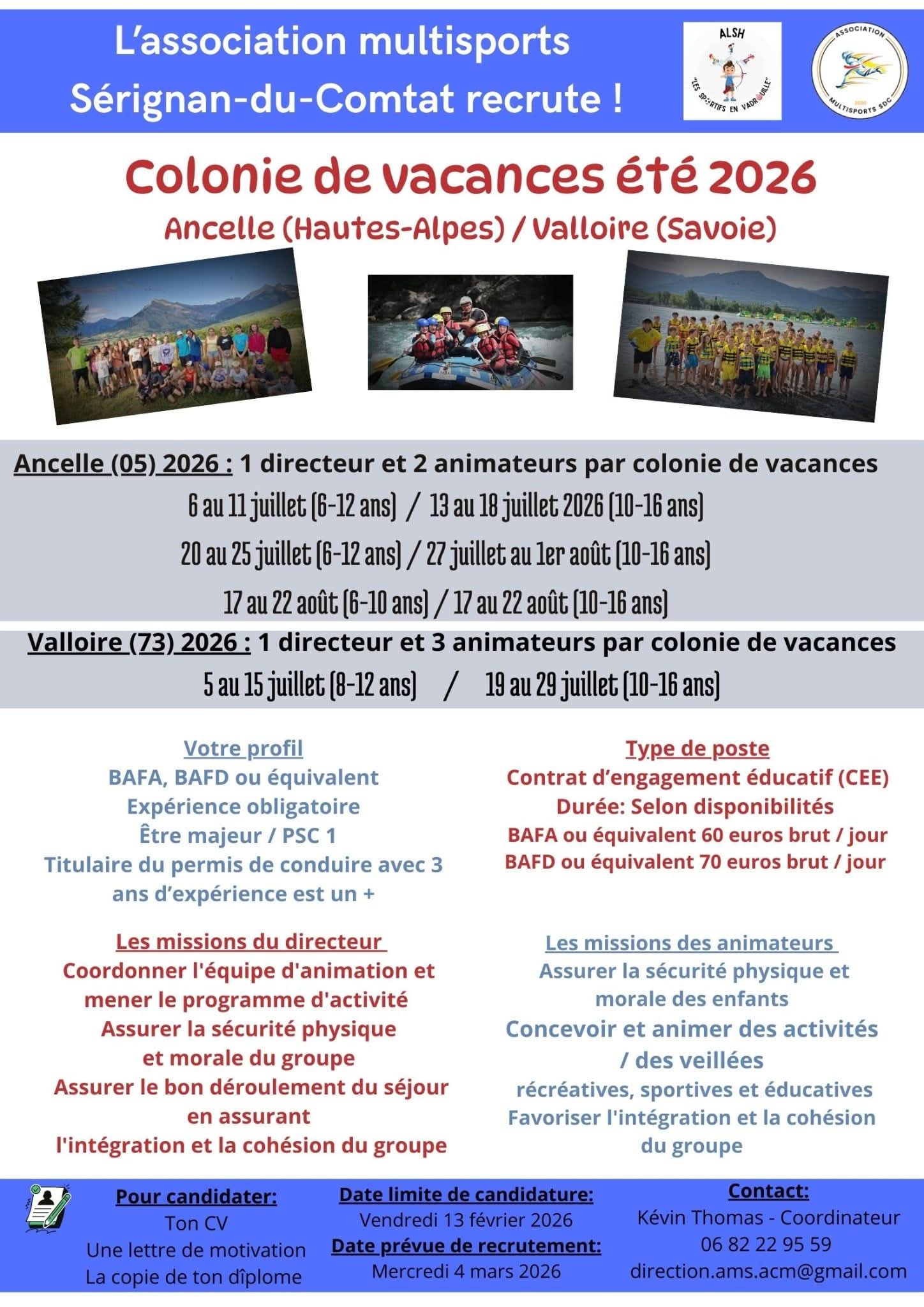Tu es passionné(e) par l’animation et tu veux faire vivre un été inoubliable aux jeunes ? Rejoins nos colonies de vacances cet été 2026 à Ancelle (05) et Valloire (73) !