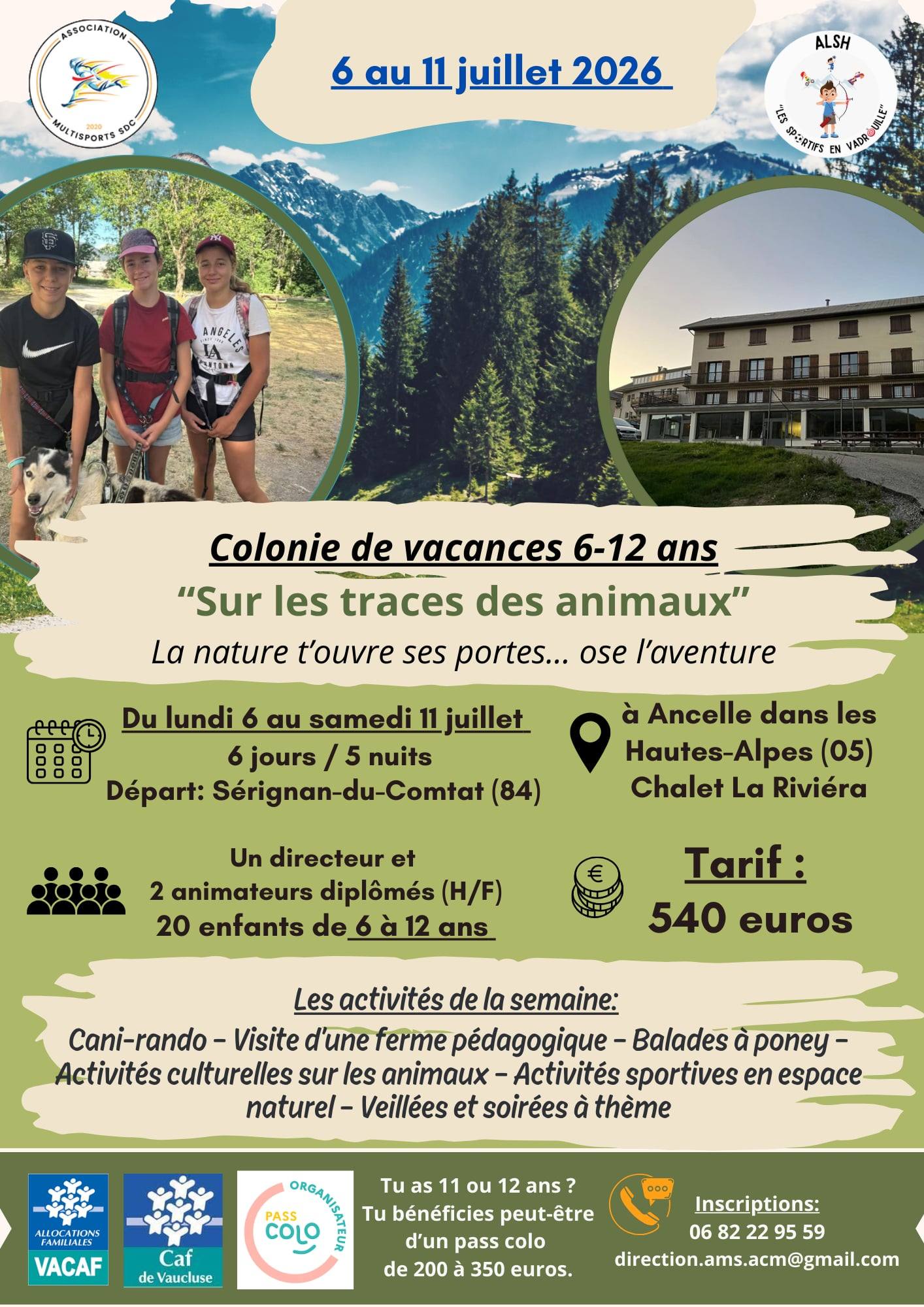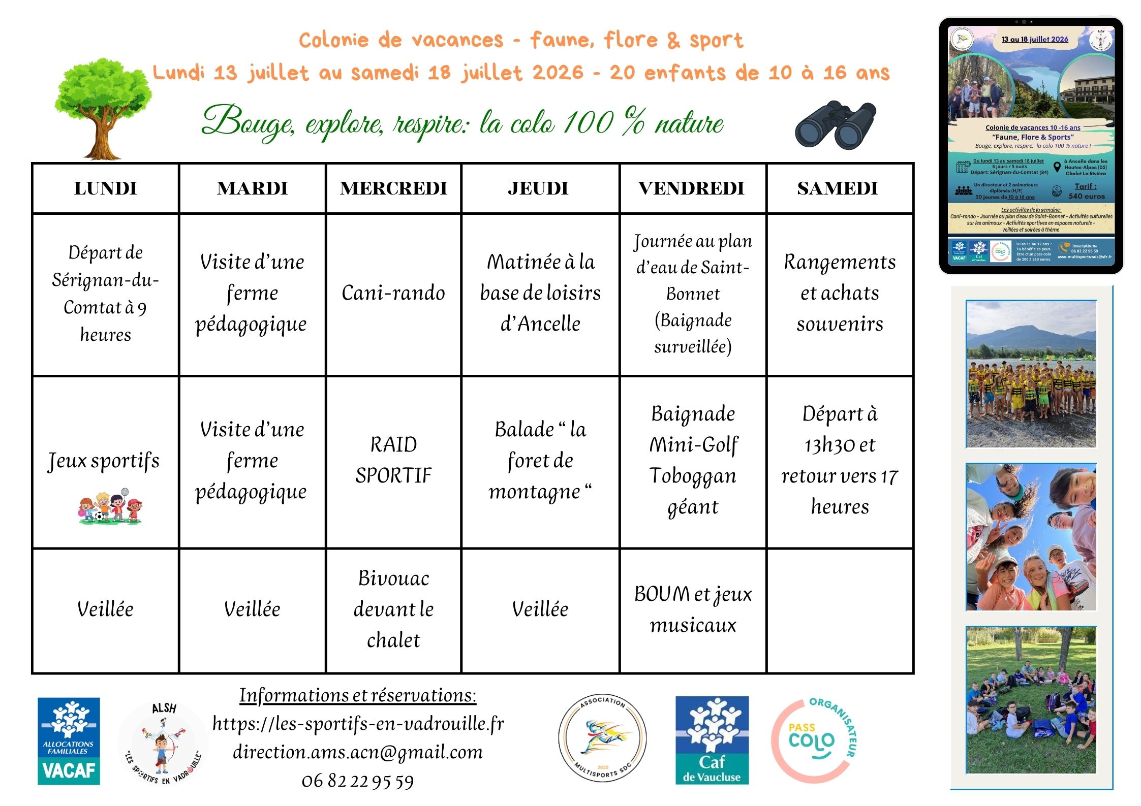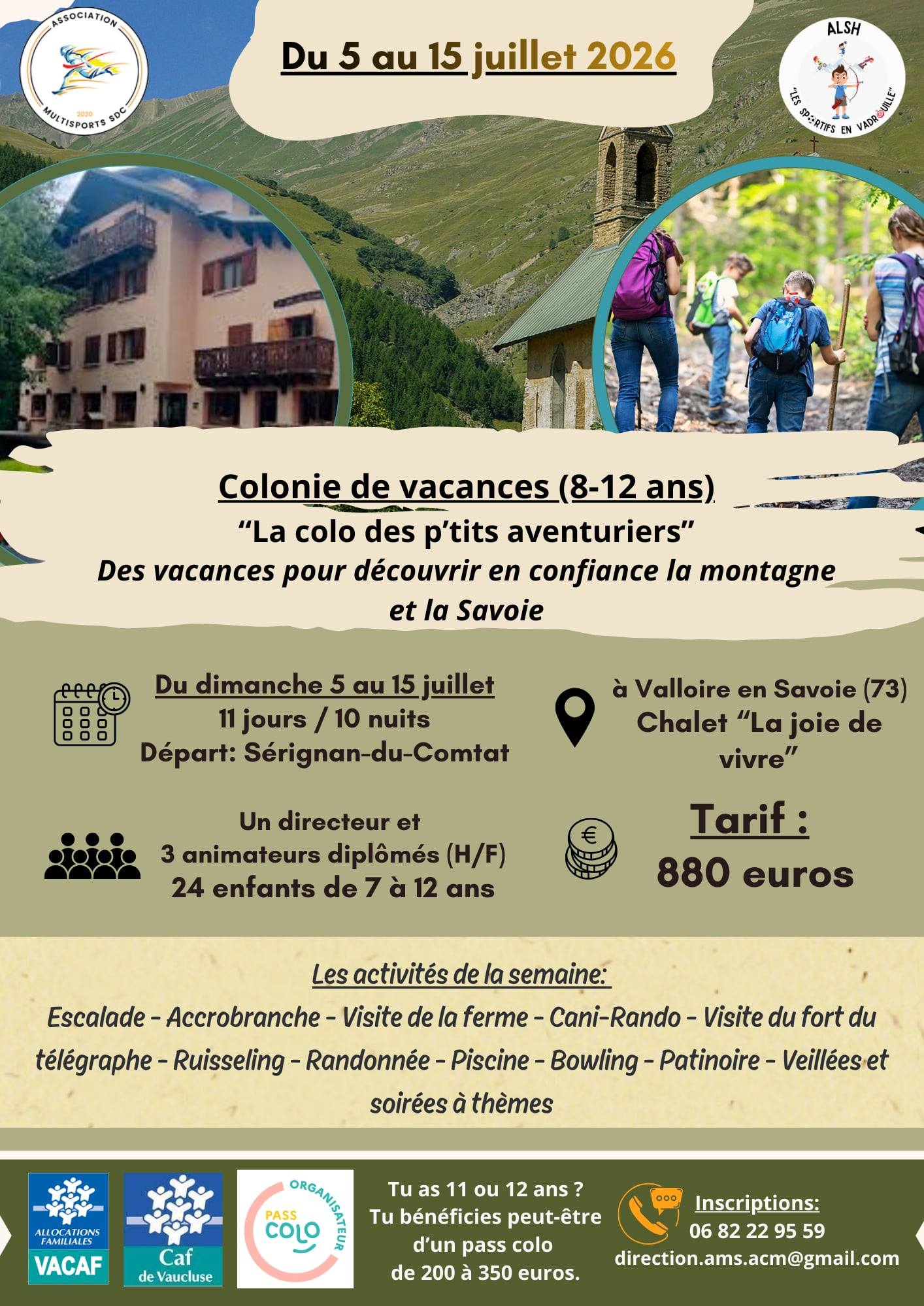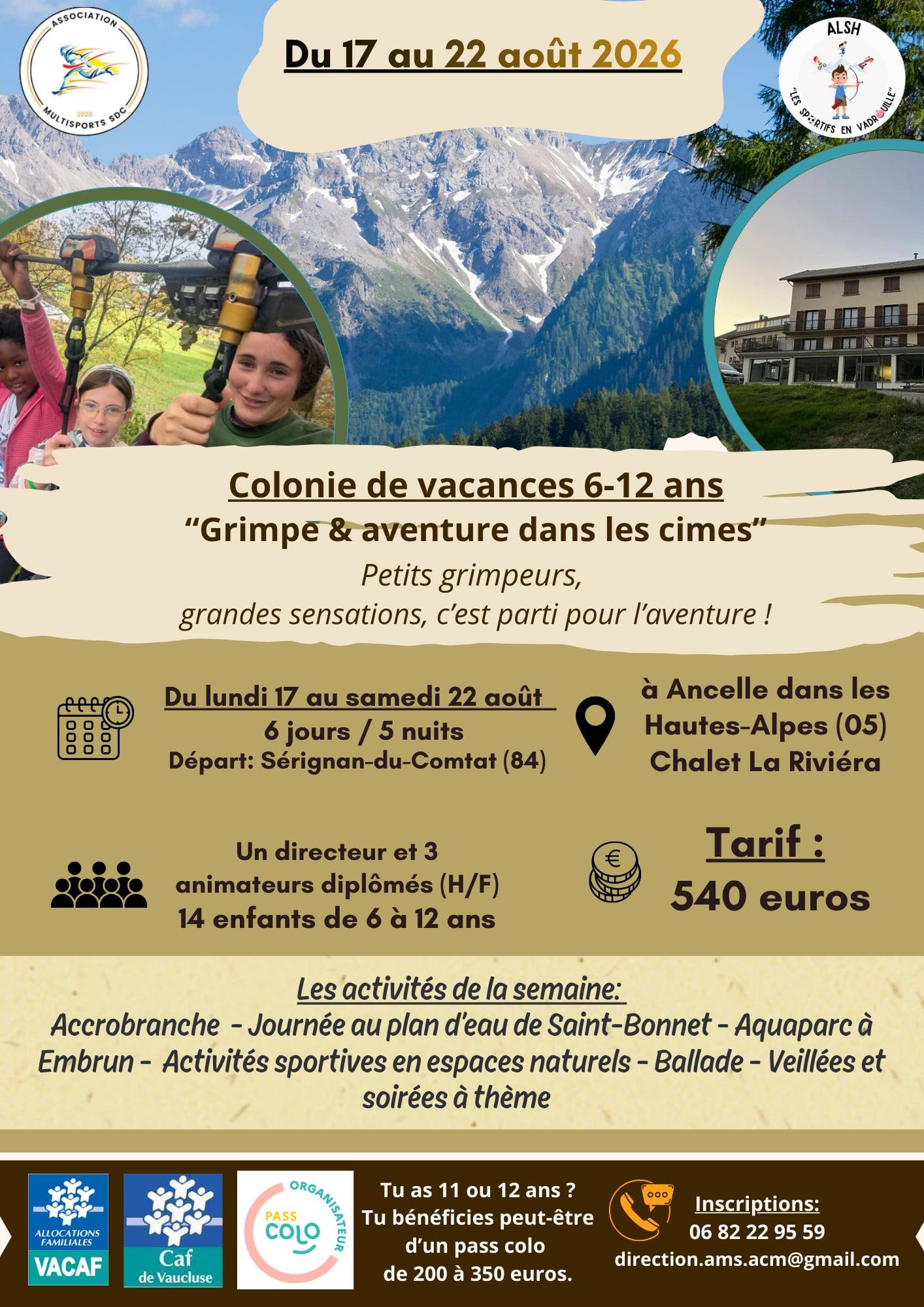 Du lundi 17 au samedi 22 août 2026 pour les enfants de 6 à 12 ans.
